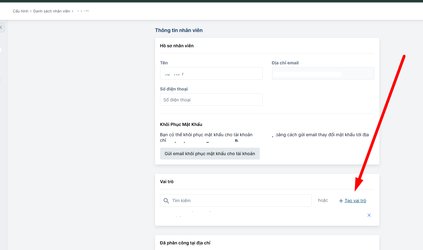 1 - Tạo nhóm vai trò cho user nhân viên đó.