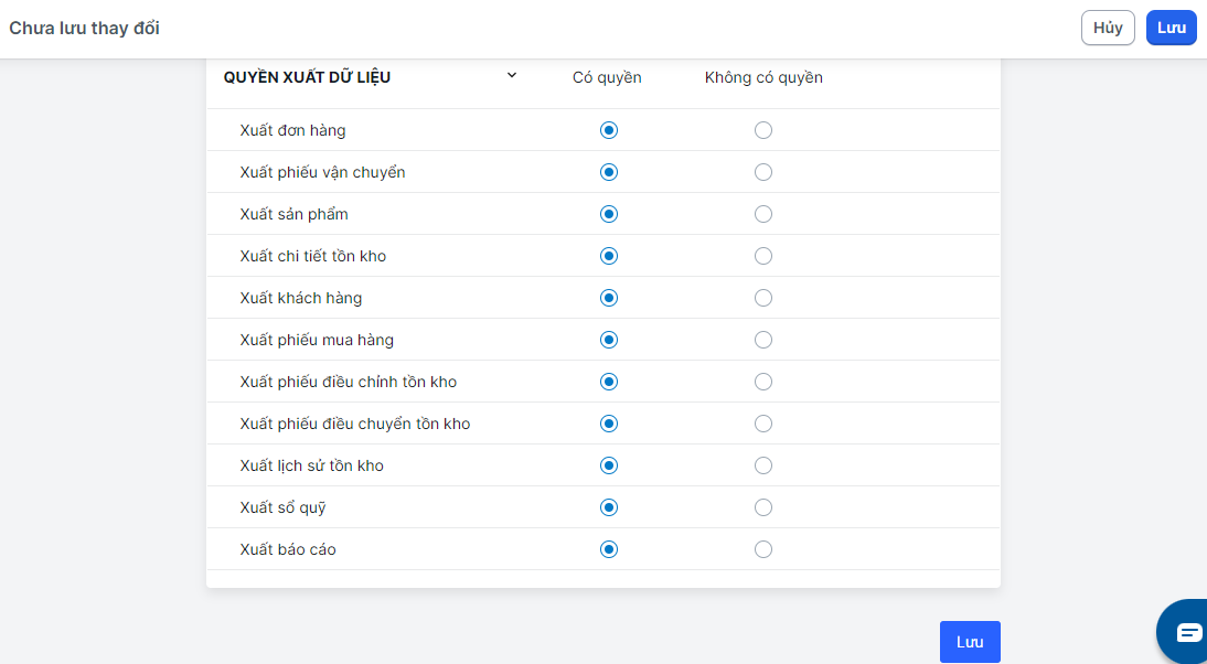 - Không có quyền: Không cho phép xuất dữ liệu