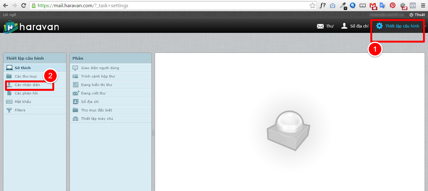 - Sau khi đã đăng nhập, Nhà bán hàng chọn "Thiết lập cấu hình" --> "Các nhận diện"