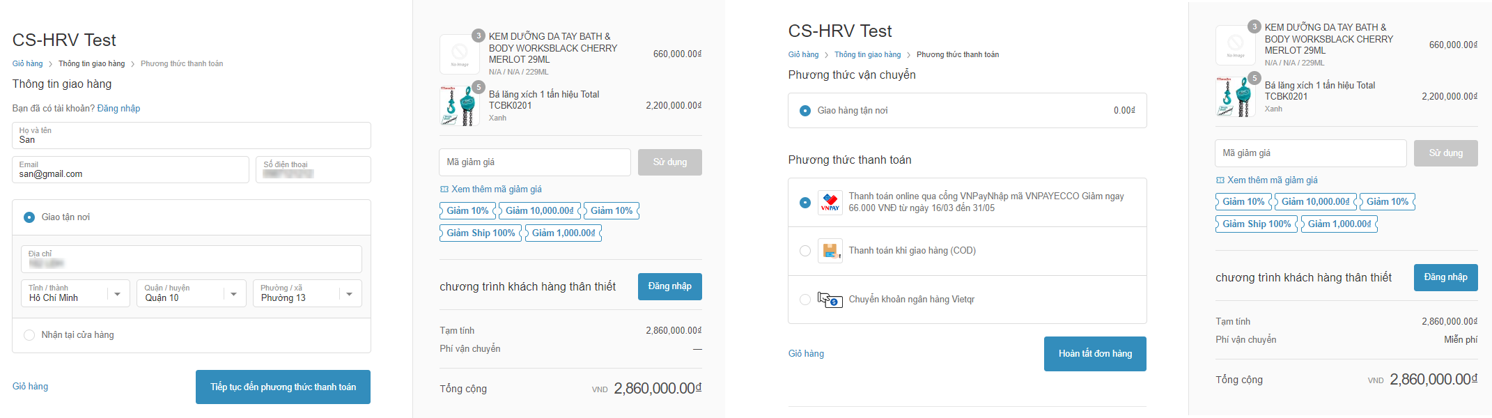 - Thanh toán trên cùng một trang: Thông tin giao hàng, phương thức thanh toán, phí vận chuyển và xác nhận đặt hàng đều nằm trên 1 trang.