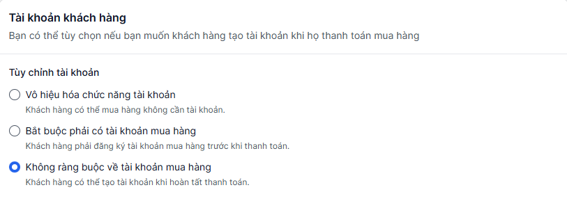 - Vô hiệu hóa chức năng tài khoản: Khách hàng có thể mua hàng mà không cần đăng ký tài khoản.