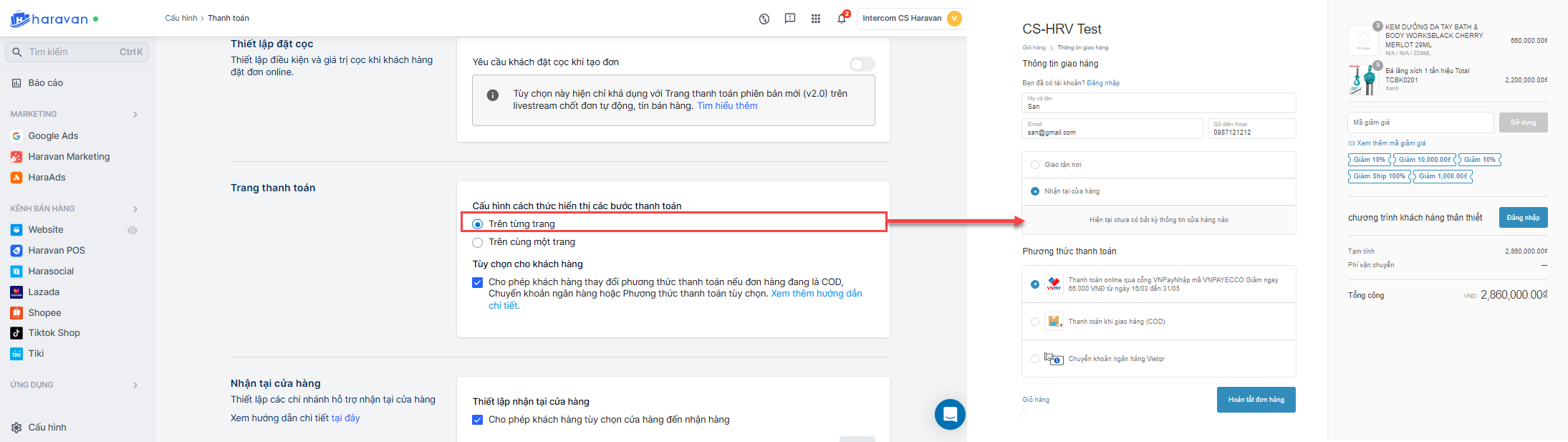Mục này hệ thống Haravan hỗ trợ Nhà bán hàng thiết lập quy trình bán hàng và thanh toán thông qua các tùy chỉnh. Các tùy chỉnh bao gồm: