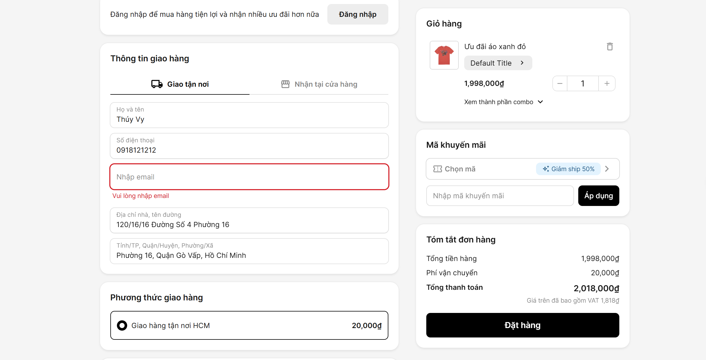 Thiết lập tùy chỉnh bắt buộc nhập email trên thông tin giao hàng