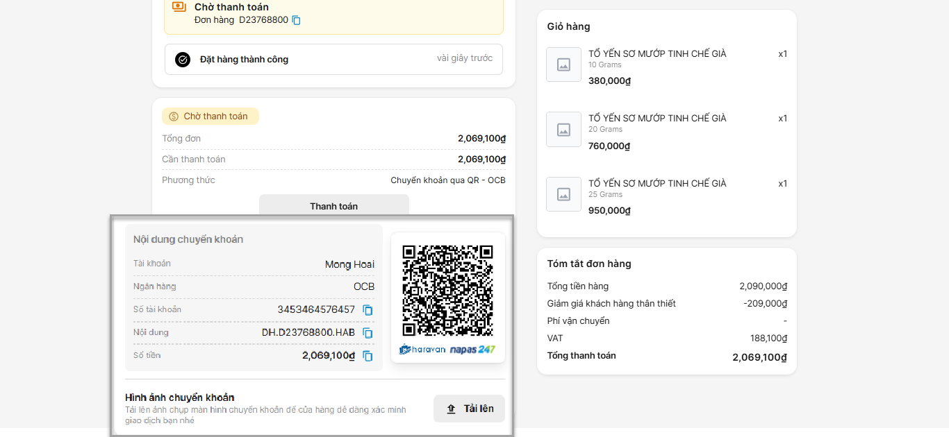 Mã QR chuyển khoản và tính năng tải hình ảnh chuyển khoản
