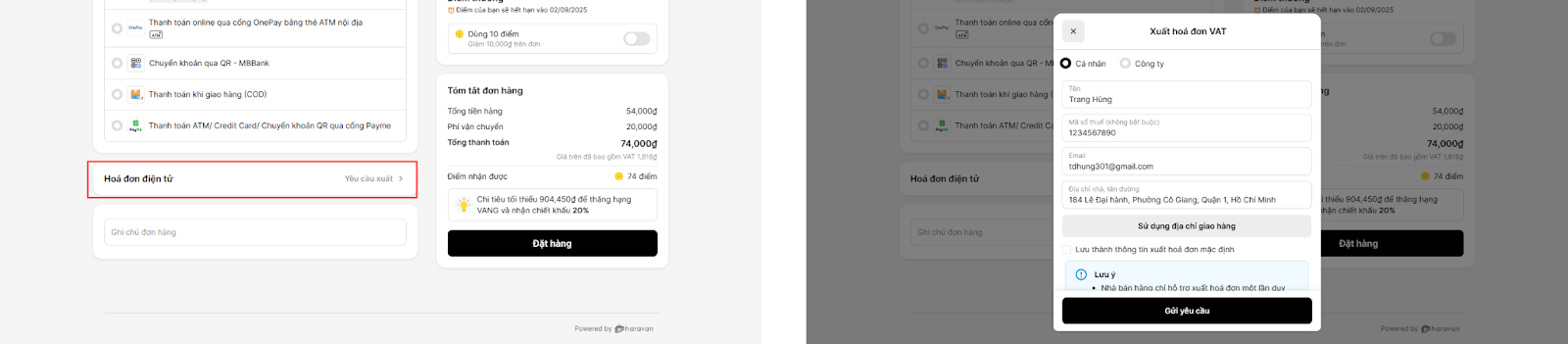 6.3 Yêu cầu xuất hóa đơn VAT điện tử