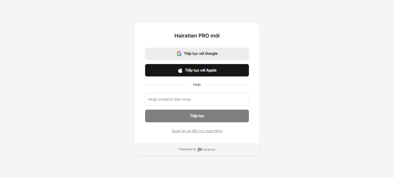 Trang thanh toán sẽ hiển thị gợi ý thúc đẩy khách hàng đăng nhập để nhận thêm nhiều ưu đãi và mua hàng tiện lợi hơn. Haravan tối ưu hóa quy trình đăng nhập, cho phép khách hàng đăng nhập nhanh qua Apple, Google, Email OTP, ZNS OTP. Người mua có thể chọn phương thức đăng nhập tiện lợi nhất mà không cần nhớ mật khẩu, rút ngắn thời gian truy cập và đảm bảo bảo mật cao. Qua đó, trải nghiệm mua sắm trở nên liền mạch, hạn chế gián đoạn, giúp khách hàng dễ dàng tiếp tục đơn hàng và tận hưởng các ưu đãi cá nhân hóa.