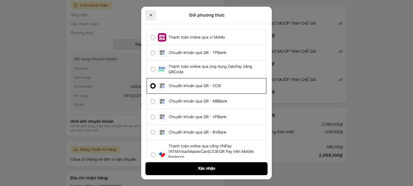 Xem hướng dẫn thiết lập phương thức chuyển khoản QR tại đây