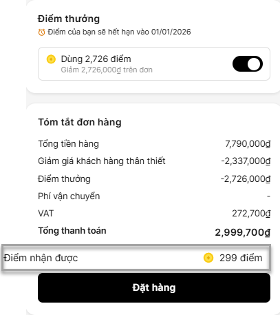 Tự động tính điểm nhận được sau khi hoàn tất đơn hàng.