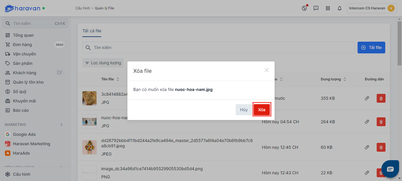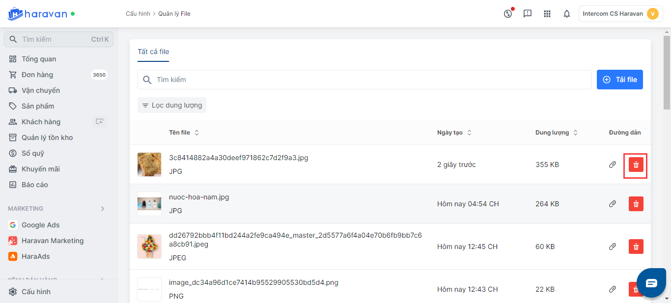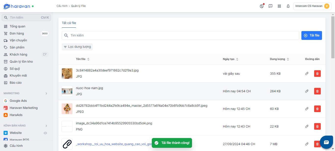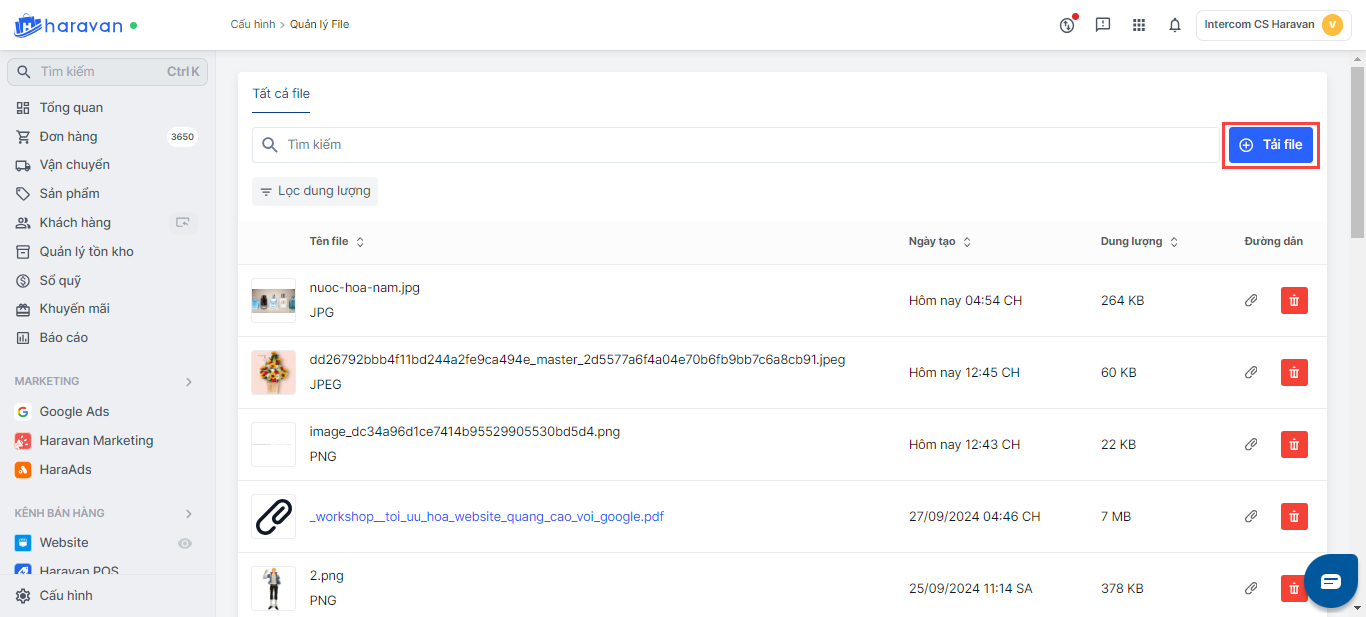 - Truy cập vào admin Haravan, mục Cấu hình và chọn File.