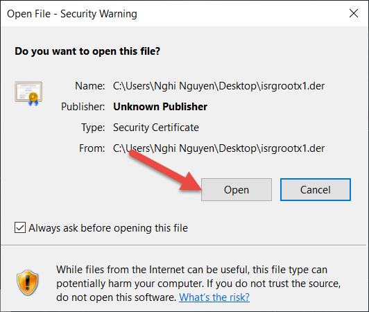 Bước 2: Sau khi đã tải về, bạn mở file và chọn Install Certificate
