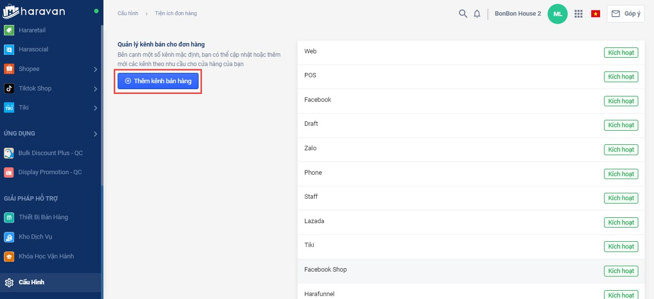 Bước 2: Chọn Thêm kênh bán hàng.