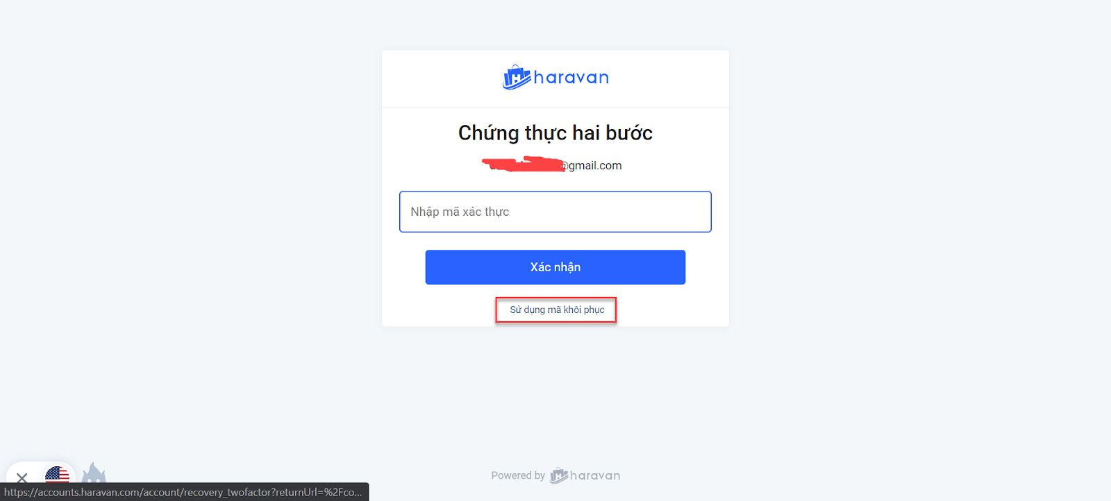 - Đầu tiên bạn cần đăng nhập vào trang admin của Haravan và nhập tài khoản vào, ở bước này sẽ xuất hiện hộp thoại yêu cầu nhập mã và bạn cần chọn Sử dụng mã khôi phục, sau đó nhập 1 trong 10 mã khôi phục đã lưu lại như hướng dẫn ở trên: