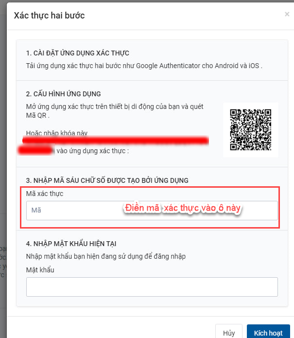 Lúc này, bạn chỉ cần nhập mã này vào ô nhập mã và xác nhận lại mật khẩu và bấm Kích hoạt.