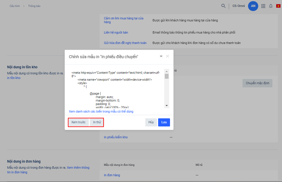 Bên cạnh mẫu in mặc định của hệ thống Haravan, Nhà bán hàng có thể tùy chỉnh mẫu in các phiếu điêu chuyển, điều chỉnh, mua hàng với việc code lại bằng HTML.