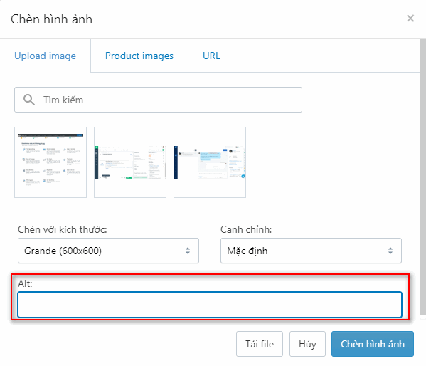 Nhà bán hàng nhập nội dung hình ảnh trong mục Alt.