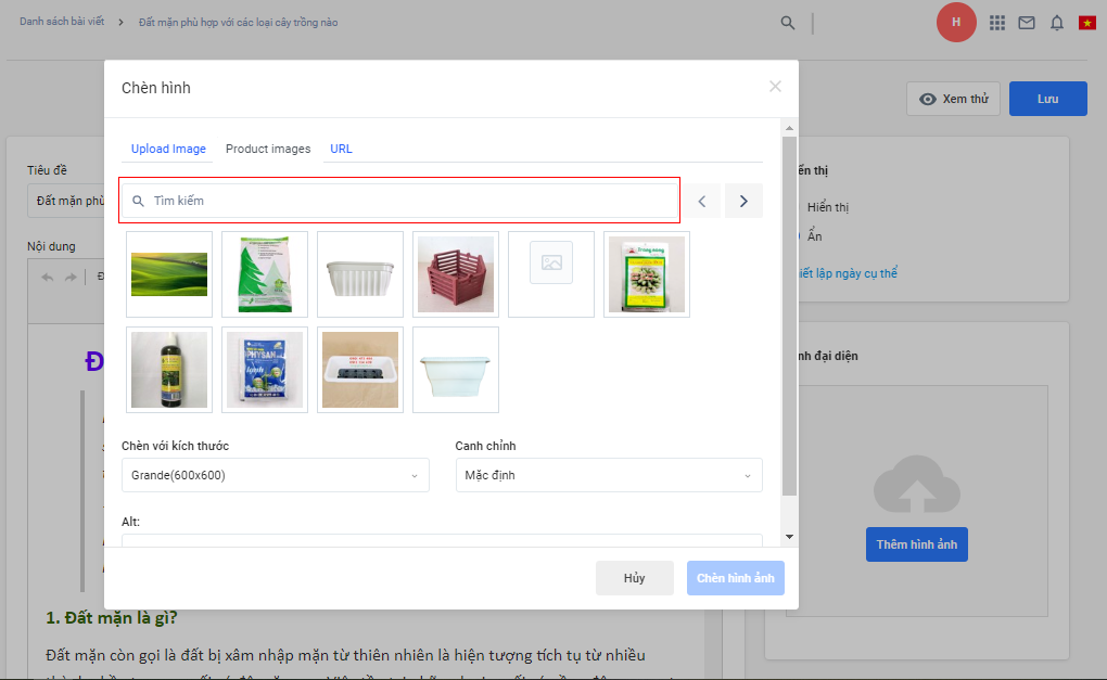 - Nhà bán hàng có thể sử dụng thanh tìm kiếm để giới hạn lại các hình ảnh cần lựa chọn.