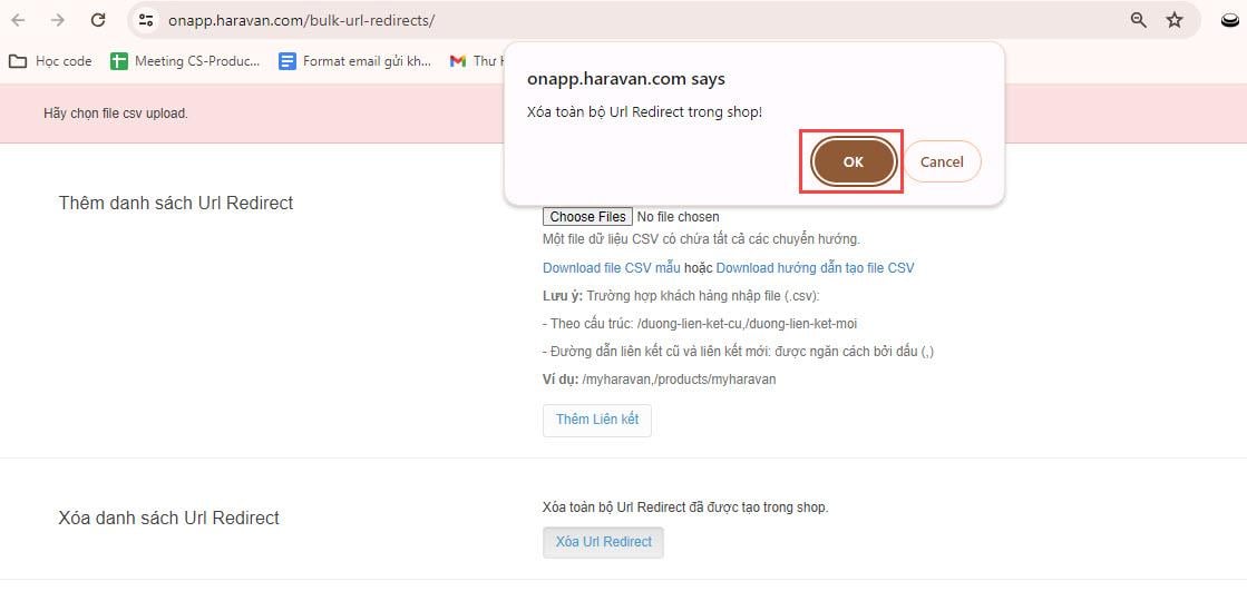 4.3 Xóa tất cả liên kết URL đã tạo trong trang quản trị MyHaravan