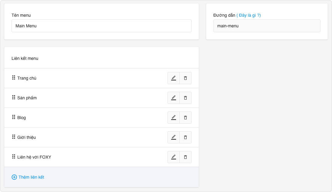- Thêm liên kết vào menu