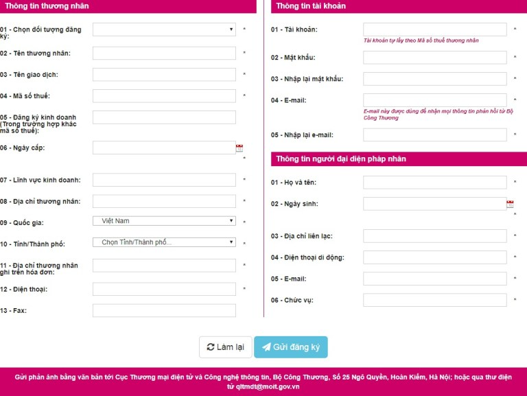 - Thông báo: Thực hiện thông báo website với Bộ Công Thương trực tuyến qua website:http://online.gov.vn/