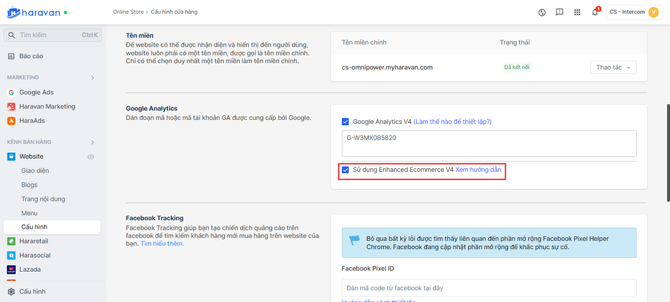 Để bật Enhanced Ecommerce tại Haravan bạn thực hiện: