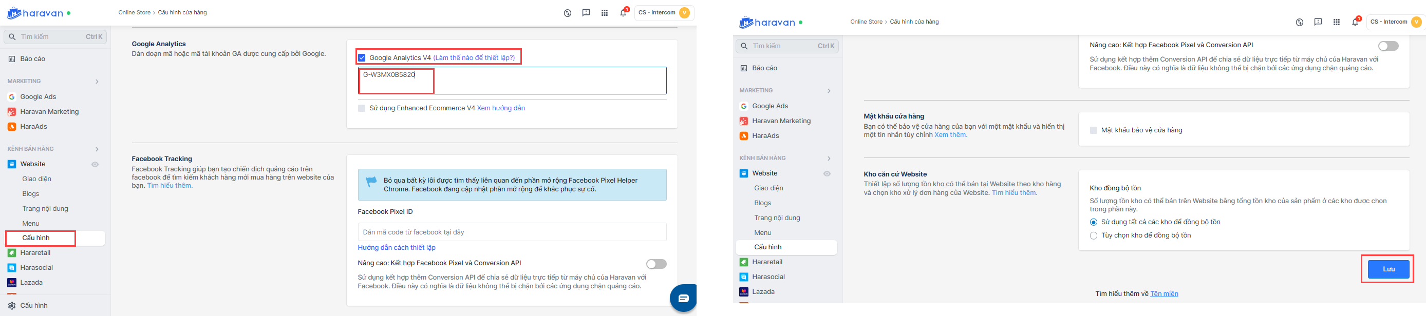Bước 2. Dán mã đo lường đã lấy vào phần thiết lập website của Haravan