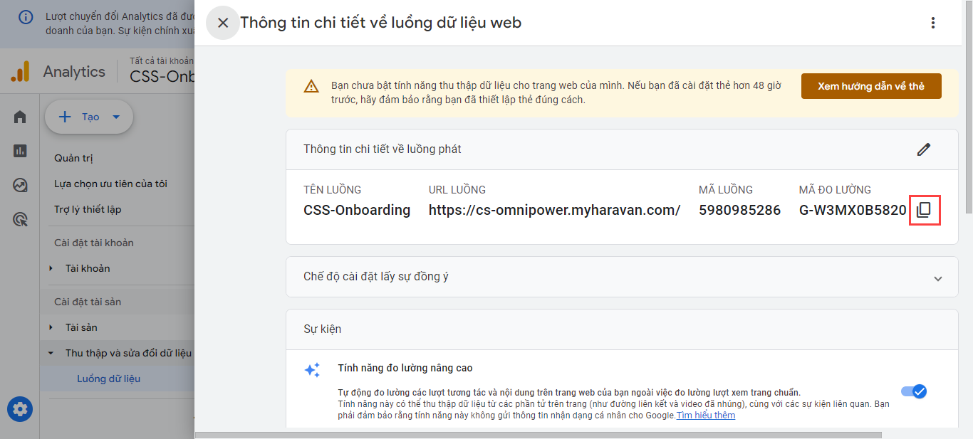 Bước 1 Tạo luồng dữ liệu cho website và lấy mã đo lường do Google cung cấp