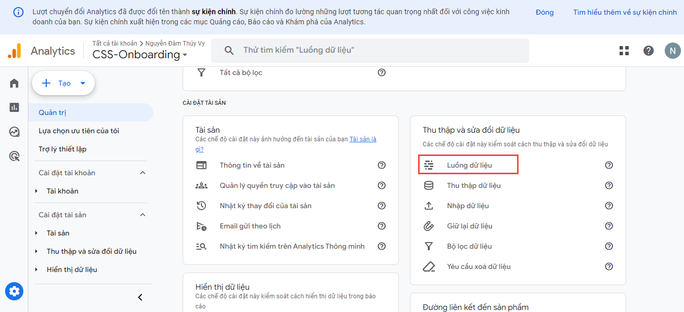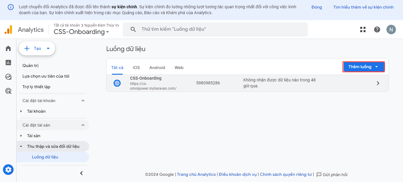 Bước 1. Tạo luồng dữ liệu cho website và lấy mã đo lường do Google cung cấp