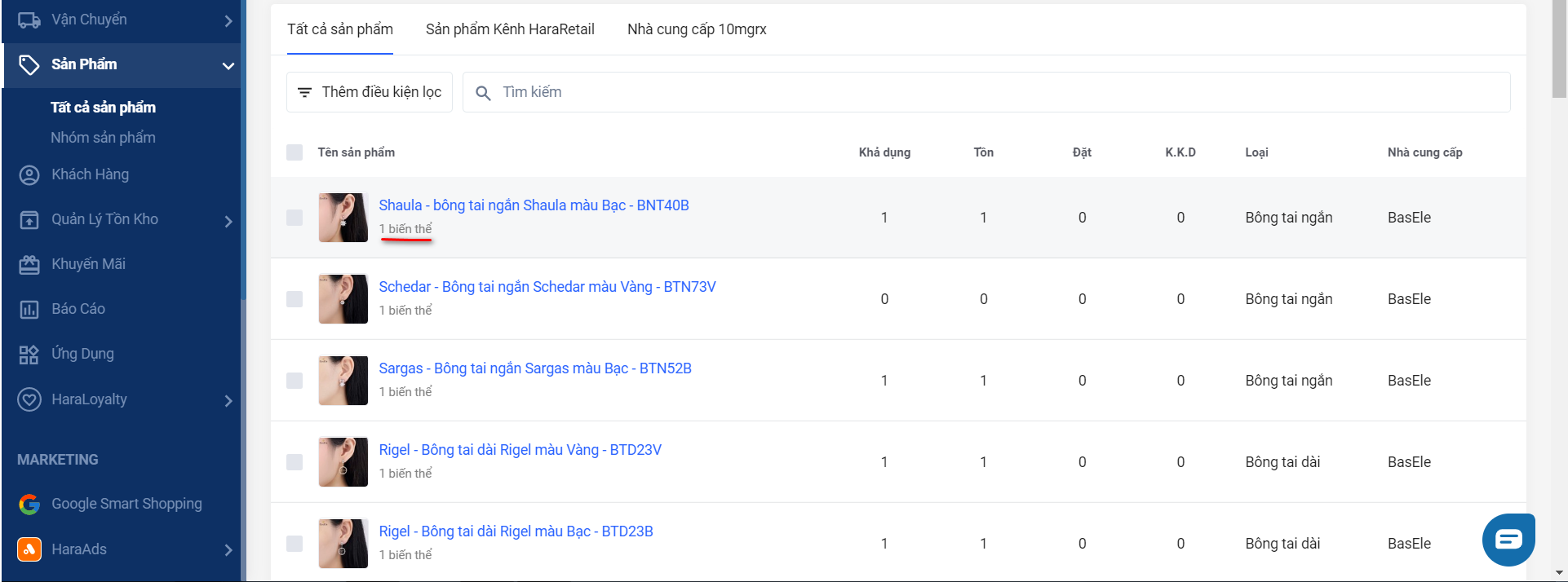 Bạn có thể biết được sản phẩm có bao nhiêu biến thể ở phần số lượng biến thể của sản phẩm tại tại Trang quản trị → Sản phẩm → Tất cả sản phẩm.