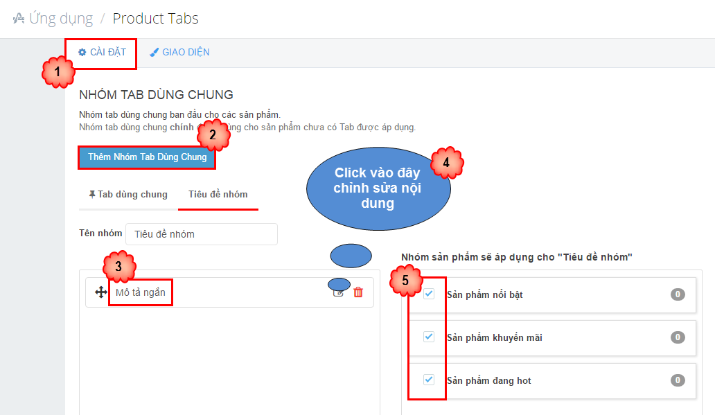 Cách cài ứng dụng tại link tài liệu này Ứng Dụng Product Tab
