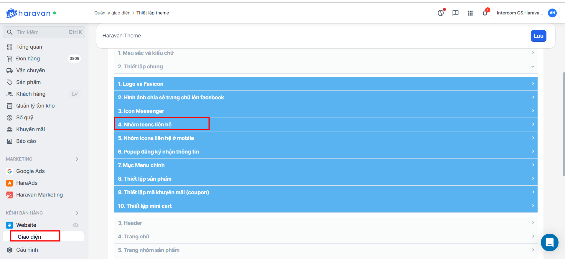 Lưuý: Mỗi giao diện sẽ hiện thị vị trí icon khác nhau. Bạn có thể check ở thiết lập tổng quát hoặc chân trang. Trường hợp sau khi kiểm tra mục thiết lập không có icon Titok bạn cần gửi yêu cầu hỗ trợ kỹ thuật