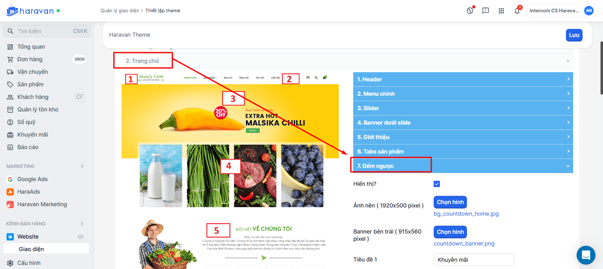 Để hiển thị countdown cho sản phẩm trên trang chủ, bạn có thể thực hiện các bước sau: