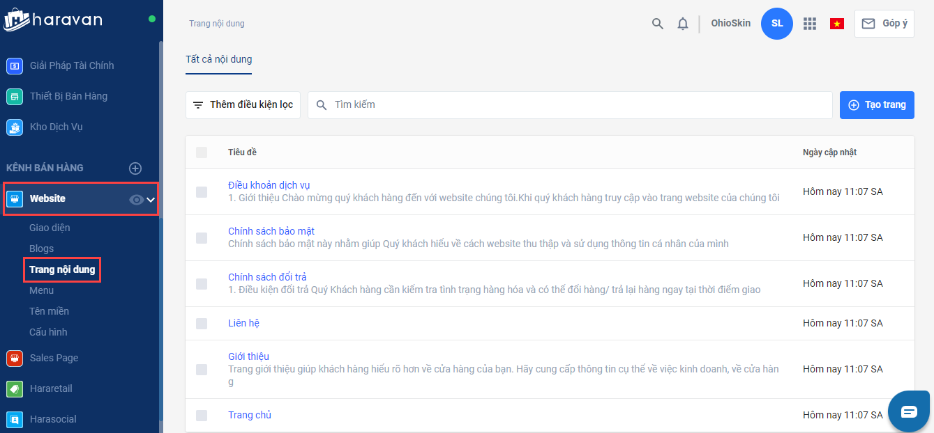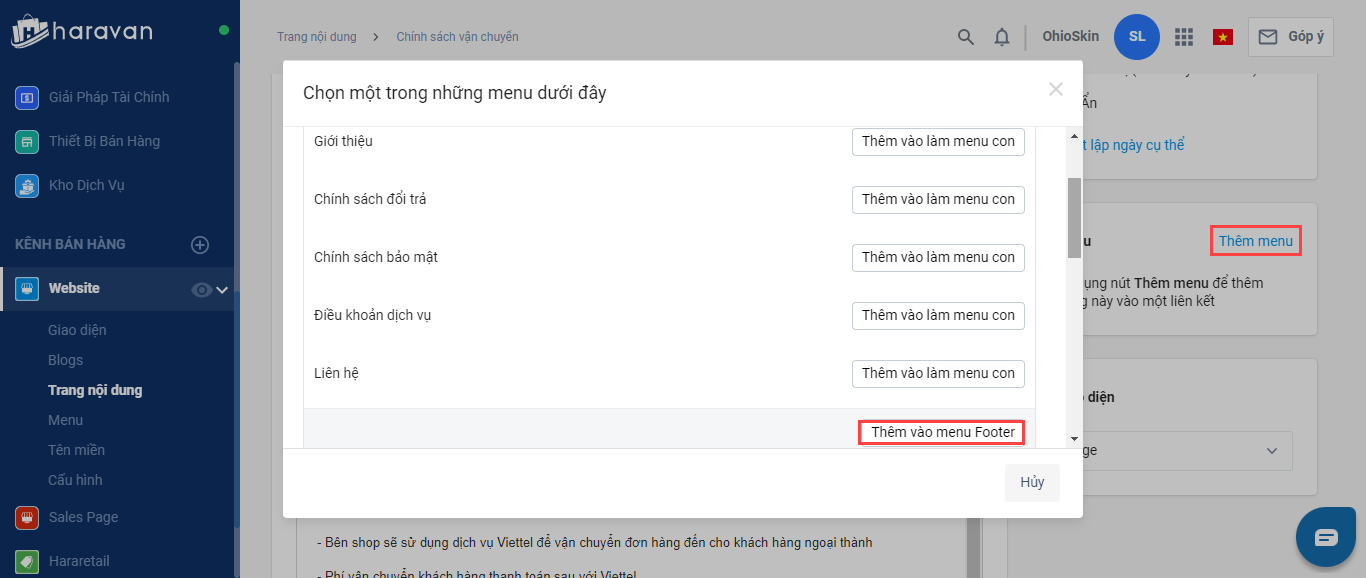 Hướng dẫn tạo, cập nhật trang chính sách bán hàng