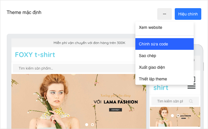 - Chọn giao diện cần hiệu chỉnh và nhấp chọn Chỉnh sửa code.
