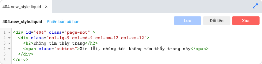 - Kết quả chúng ta có một file giao diện 404 mới có thể chỉnh sửa code để dùng cho phần Thiết lập theme.