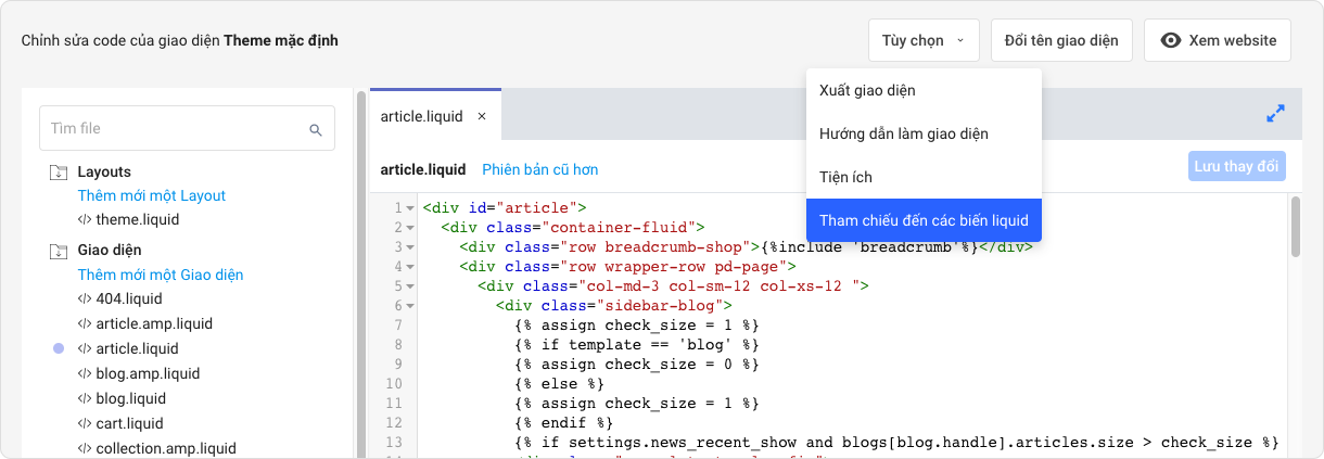 Bạn có thể Tham chiếu các biến Liquid để việc tùy chỉnh được chính xác và có kết quả hợp ý nhất