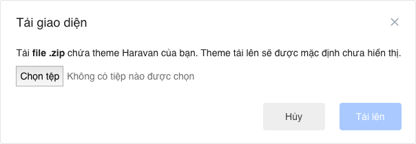 Nếu đã có sẵn một file giao diện (đã được nén bằng đuôi .zip), bạn có thể tải file giao diện đó lên Trang quản trị và giao diện đó sẽ tuân theo các thiết lập chứa trong file.