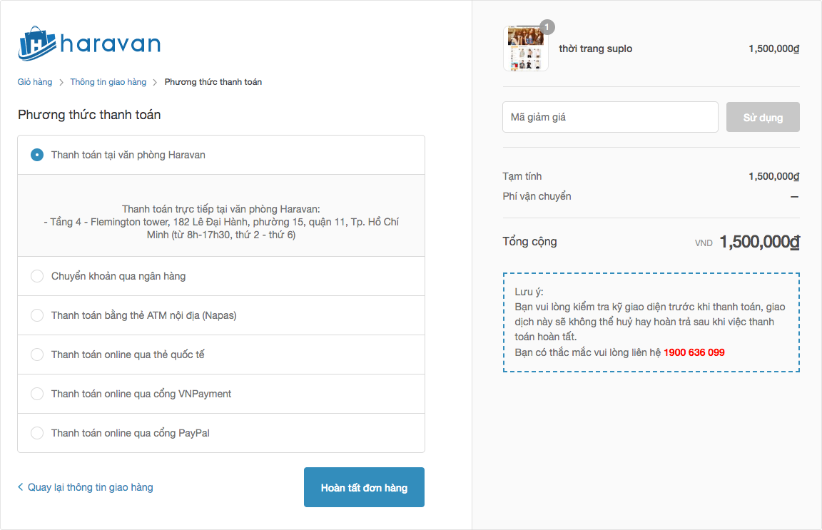 Điền thông tin thanh toán, chọn hình thức thanh toán và đặt hàng