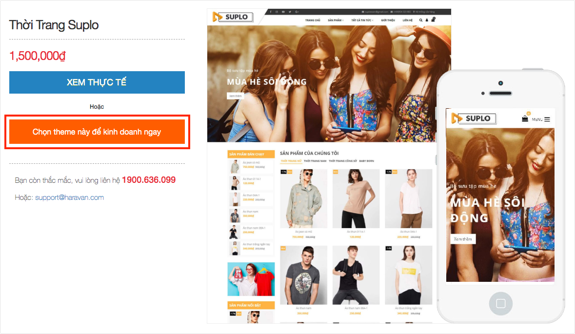 Bạn chỉ nên mua các giao diện từ trang themes.haravan.com, vì các giao diện này đã được kiểm duyệt và đảm bảo hoạt động ổn định với website của bạn.