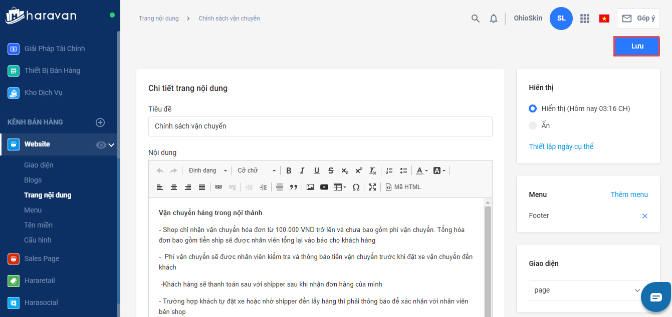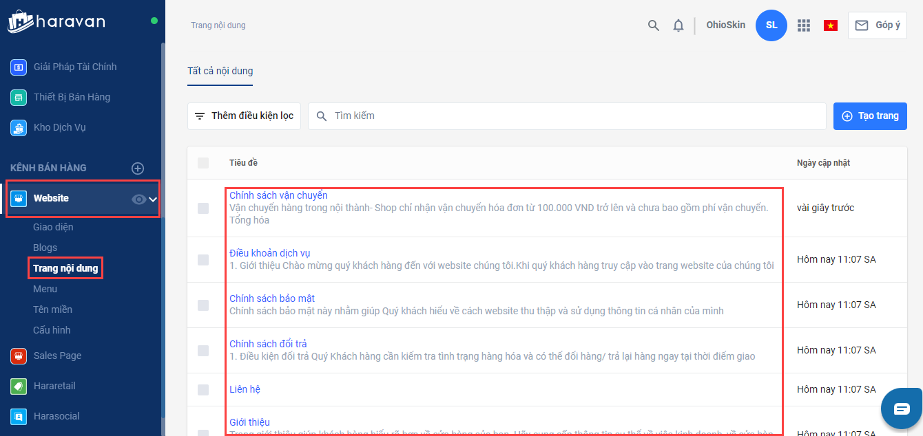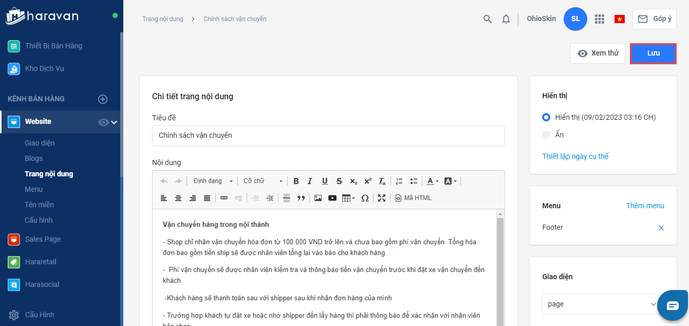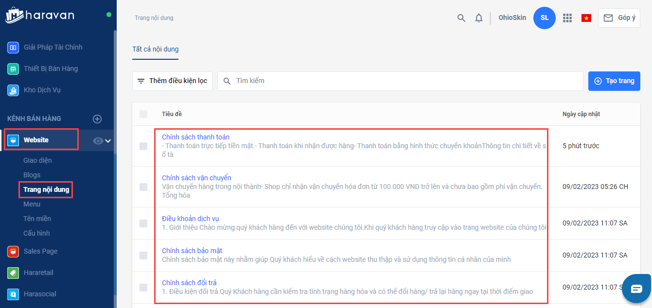 Hướng dẫn tạo mới và chỉnh sửa các trang chính sách bán hàng