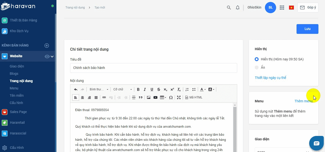 - Hướng dẫn tạo trang Chính sách bán hàng