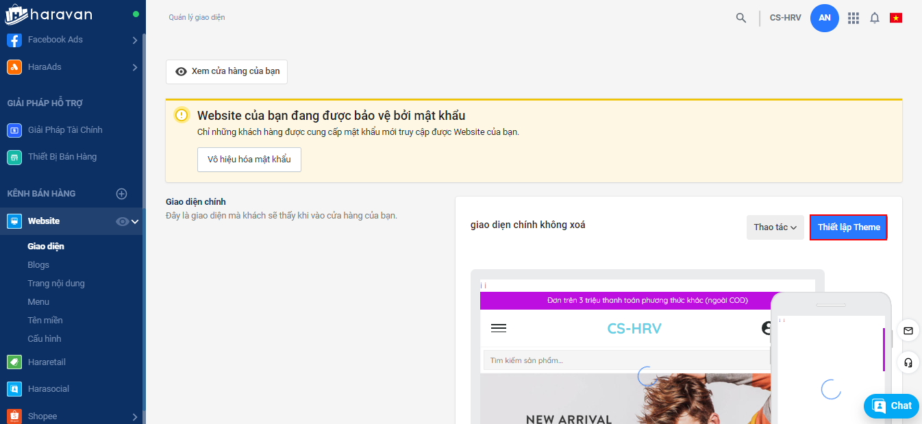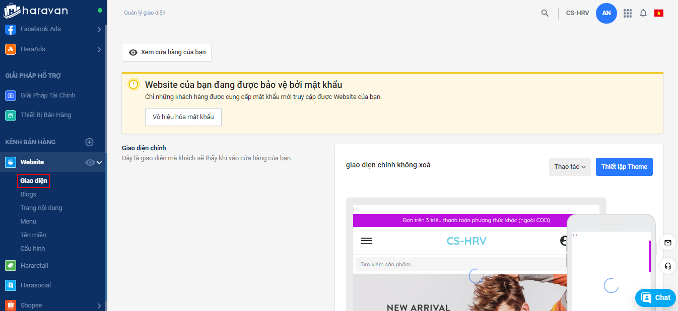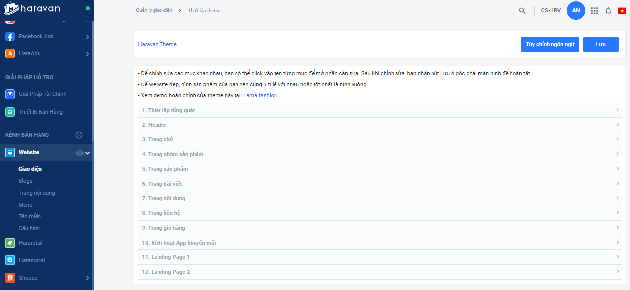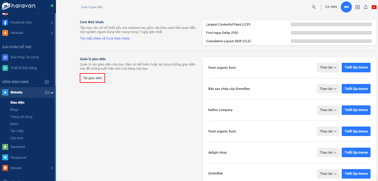 | Quản lý giao diện | Người bán hoàn toàn có thể tải một giao diện thích hợp lên Haravan hoặc có thể có được nhiều giao diện bắt mắt hơn và đạt chuẩn SEO nhằm đáp ứng yêu cầu chạy quảng cáo Google Ads và Facebook PDA sau này. |