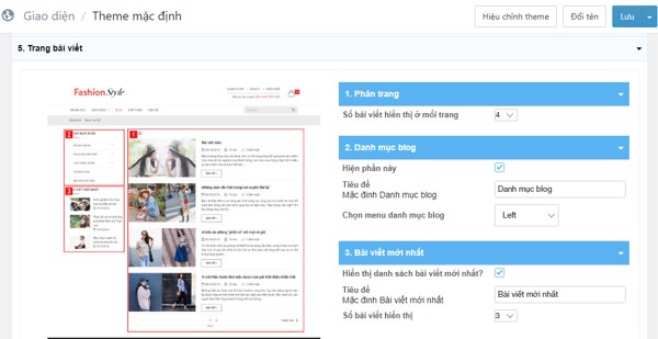 Hỗ trợ thiết lập chọn danh mục bài viết, số lượng bài viết được hiển thị hoặc chọn phân trang hiển thị bài viết sao cho phù hợp nhất với website của Nhà bán hàng