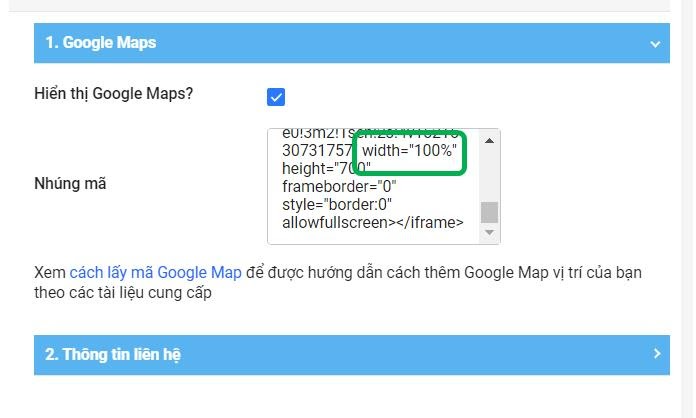 - Người bán nên chỉnh độ rộng của hình ảnh Google Maps hiển thị là 100% để có hình ảnh rõ nét nhất.