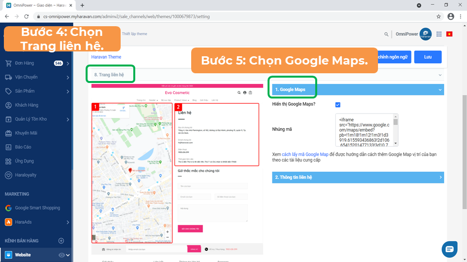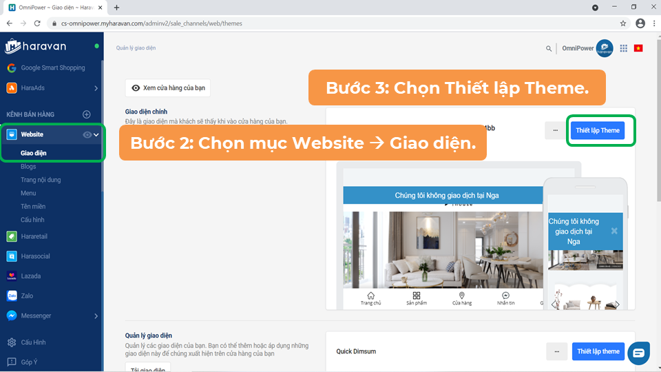 Truy cập vào admin Haravan, mục Kênh bán hàng.