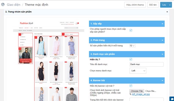 Hỗ trợ chỉnh lại cách hiển thị, sắp xếp sản phẩm, danh mục sản phẩm, banner...