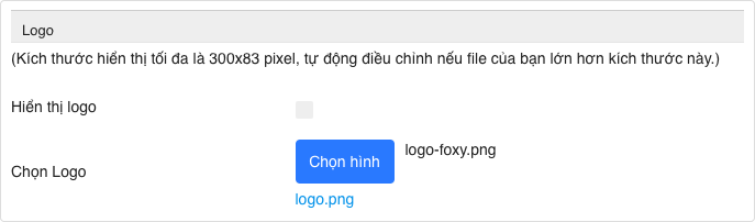 Lưu ý: Khi tải chọn logo và favicon, bạn chú ý kích thước ảnh để bảo đảm logo và favicon được hiển thị tối ưu nhất. Trong trường hợp logo hay favicon không có kích thước hay tỷ lệ đạt chuẩn, việc hiển thị có thể kém hiệu quả.