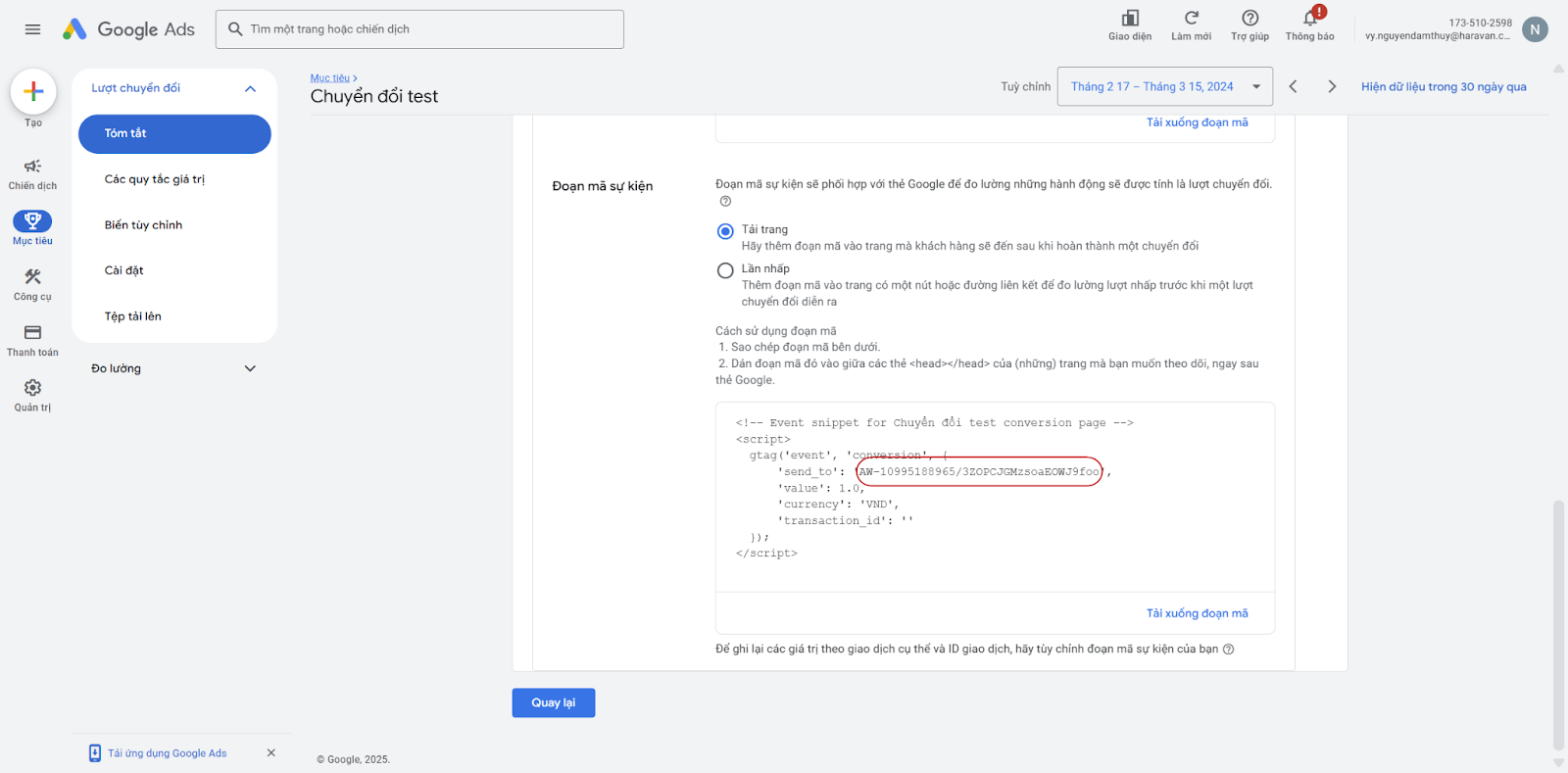Thiết lập công cụ đo lường chuyển đổi Google Ads trên Haravan