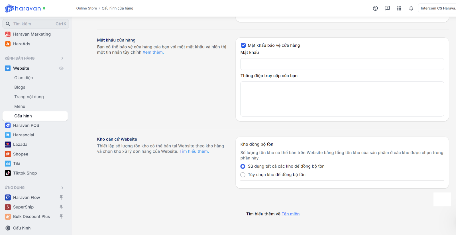 - Trở lại trang quản trị MyHaravan, bạn chọn Kênh Website -> Cấu hình. Trong Cấu hình, bạn kéo xuống Google Ads, tích chọn vào ô Google Ads và nhập đoạn mã vừa copy vào.