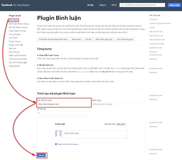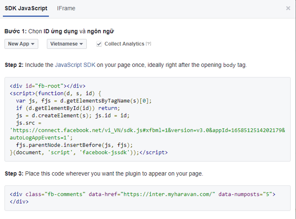 Bước 5: Thêm khung bình luận bằng facebook vào web
