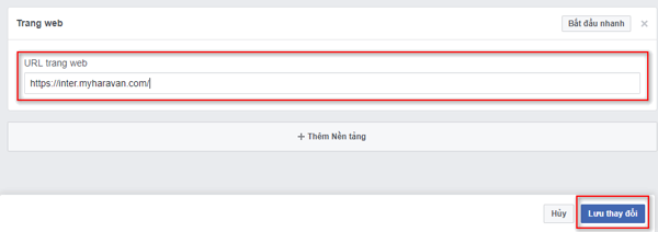 Nhà bán hàng điền đường dẫn của web vào ô URL trang web. Sau đó chọn Lưu thay đổi.